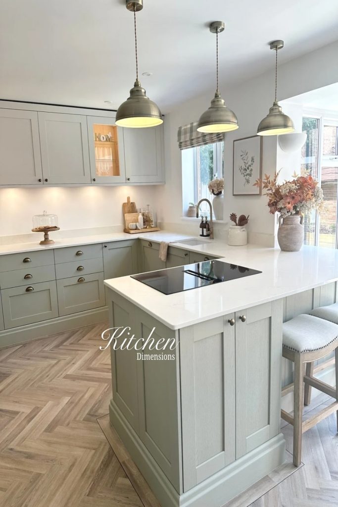 This Nordic kitchen feels calm and clean. Light gray cabinets and wooden tops make it soft and peaceful. White walls and woven baskets bring warmth. A bit of green adds freshness and life. This fits 2025’s cozy minimalism trend. Want this simple style? Choose clean lines and natural touches. Share your Nordic kitchen ideas in the comments!