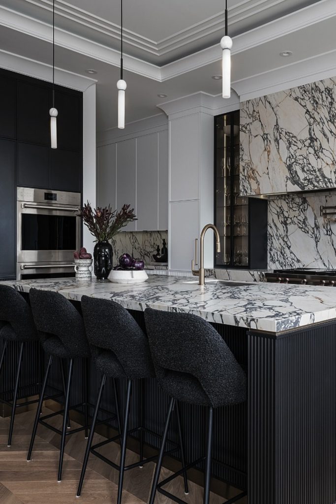 This elegant European kitchen feels new and classic at once. The white cabinets and wood parts look stylish. The marble island and gray tiles add a soft glow. The pendant lights match 2025’s cozy trend. It feels fancy but still friendly. Want this easy look? Use clean lines and warm materials. Tell me your elegant kitchen ideas in the comments and share to inspire others!