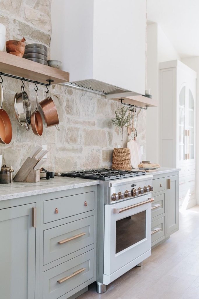 This Provencal kitchen feels like a sweet dream from the French countryside. The light purple cabinets and stone walls make it warm and sunny. The brass handles and woven baskets add cute charm. The soft light makes the place glow. I love how the old wood shows the 2025 trend for natural design. Want this cozy look? Use soft colors and rough textures. Share your Provencal kitchen ideas in the comments and let’s make a space that feels like a happy getaway