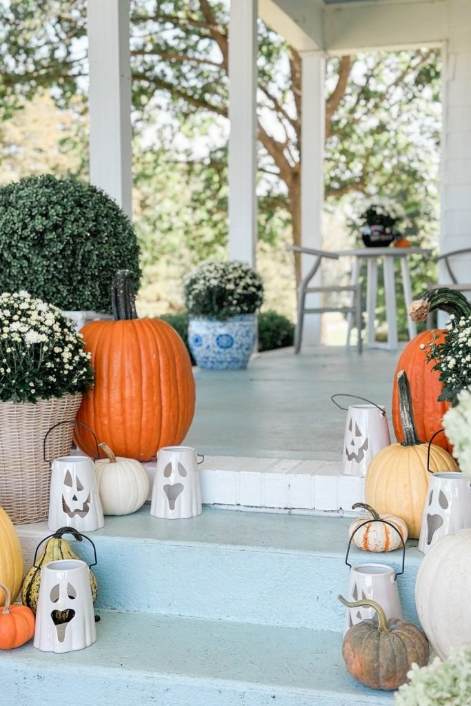 3. Vibrant Fall Porch with Bold Pumpkin Accents