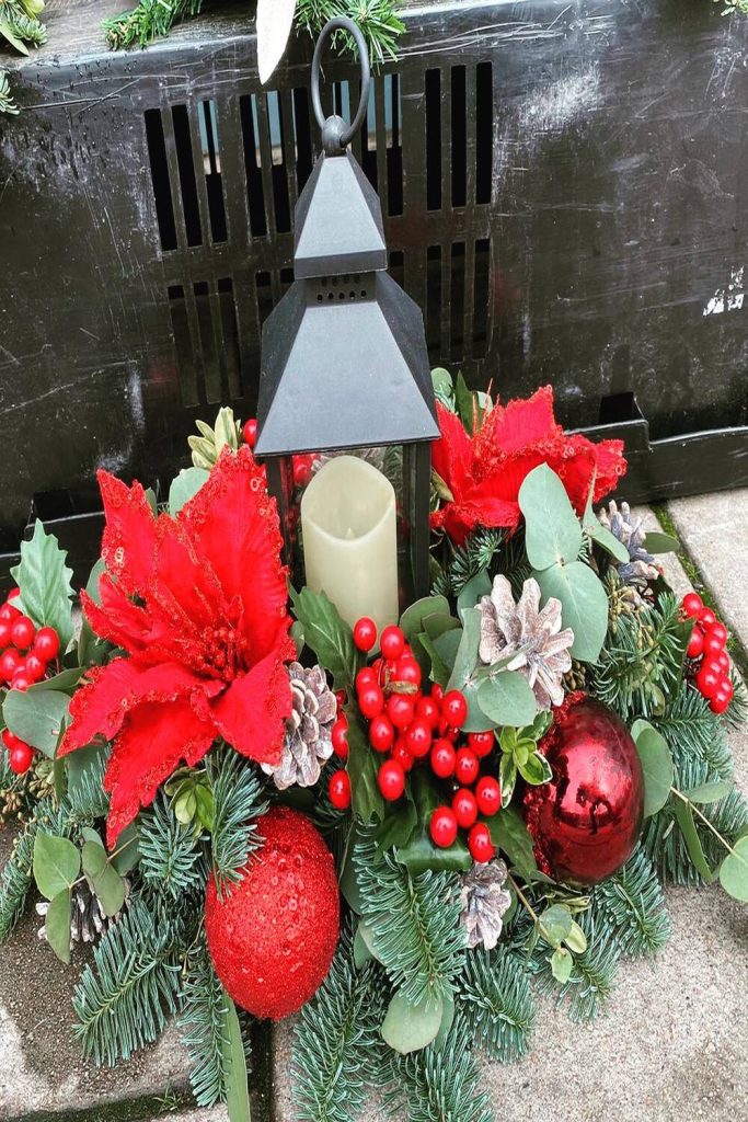 This Christmas table centerpiece is all about cozy charm. A rustic lantern surrounded by pine sprigs and berries creates a warm, inviting glow. The mix of natural textures and soft lighting feels like a holiday cabin retreat. I love how the lantern adds a unique focal point, perfect for a rustic tablescape. Use battery-powered candles for safety and sustainability. This look is ideal for casual holiday gatherings. Pin it for your next dinner party and share how you’d style a lantern centerpiece!