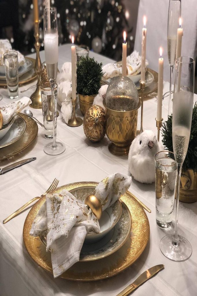 This Christmas table centerpiece exudes sophistication. White candles and gold ornaments sit on a mirrored tray, reflecting soft light for a glamorous touch. The clean color palette feels modern yet festive, perfect for a chic holiday dinner. As a decor enthusiast, I love how the metallic accents add warmth without overpowering the table. Pair with crisp linens for a polished look. Want to recreate this elegant vibe? Pin it and share your favorite ways to add sparkle to your holiday table in the comments!