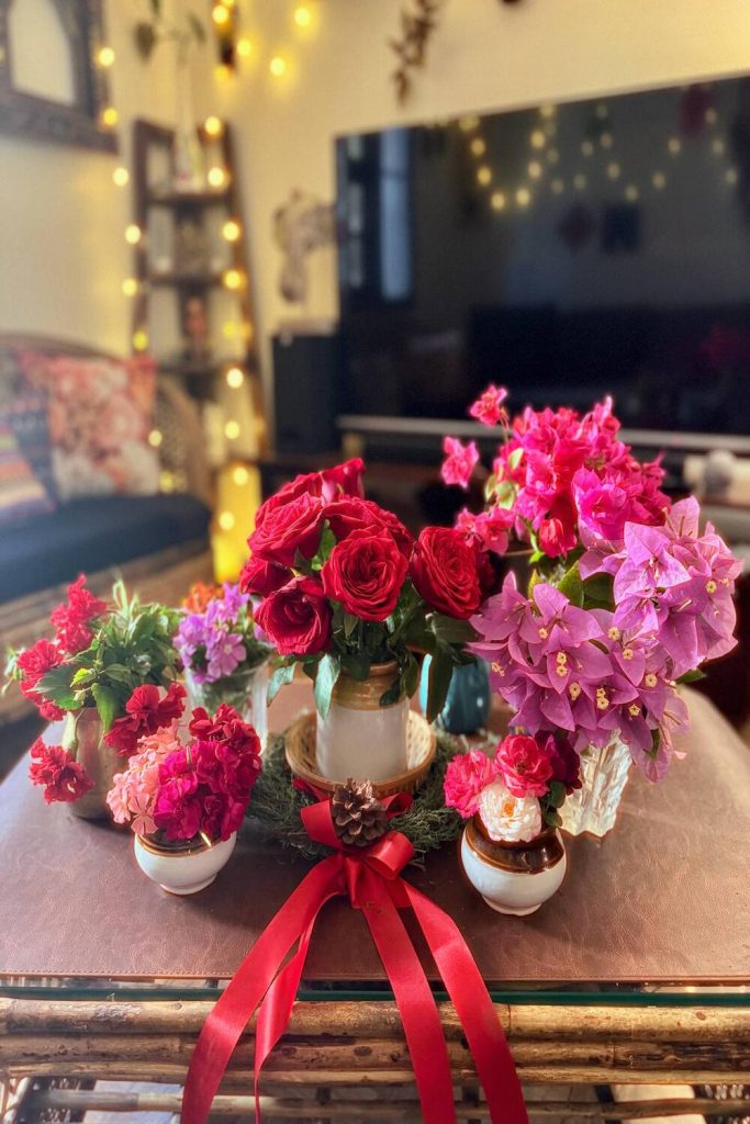 For a more permanent “floral” look, I love mixing flowering succulents into a terracotta bowl. It’s a sustainable way to keep life on your coffee table without the waste of cut stems. When a Kalanchoe or a flowering Echeveria blooms, it adds such a surprising pop of color to the waxy greens. This look is very grounded and earthy, perfect for a sunny living room. It’s a low-water, high-style solution that feels very connected to nature and the current trend of “indoor-outdoor” living.