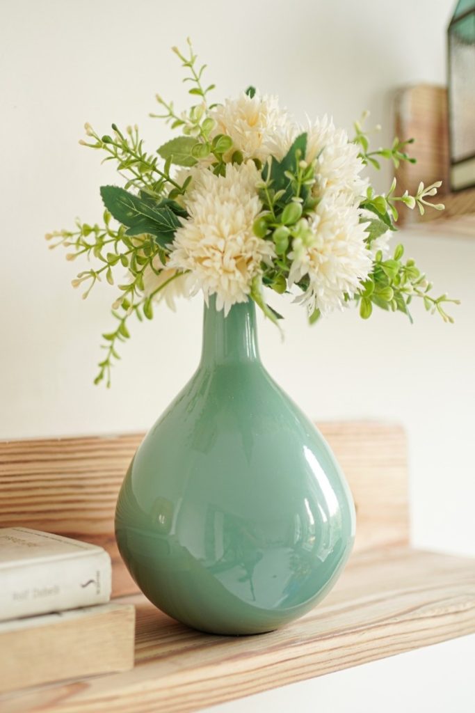 Tiny White Buds in Small Vases Small white buds are not just for filling gaps. Put them in small jars that do not match. They look like clouds on a shelf. They are cheap. They last a long time. Even when they dry out, they look good. This is a soft way to trim a room. It feels light.