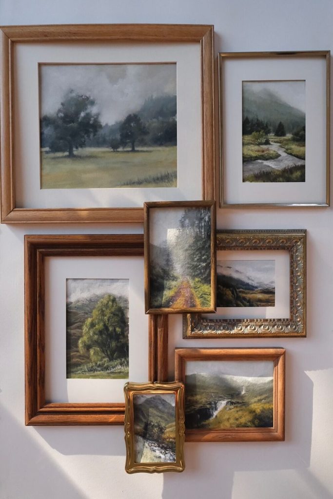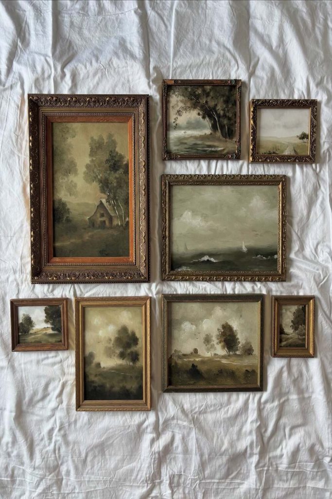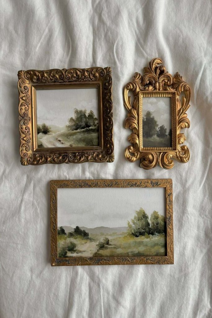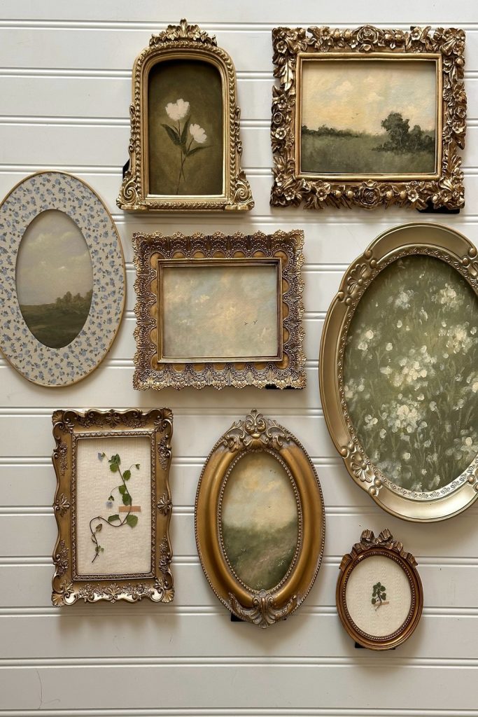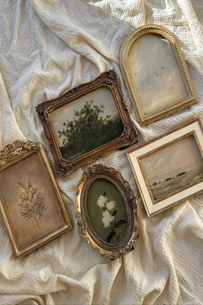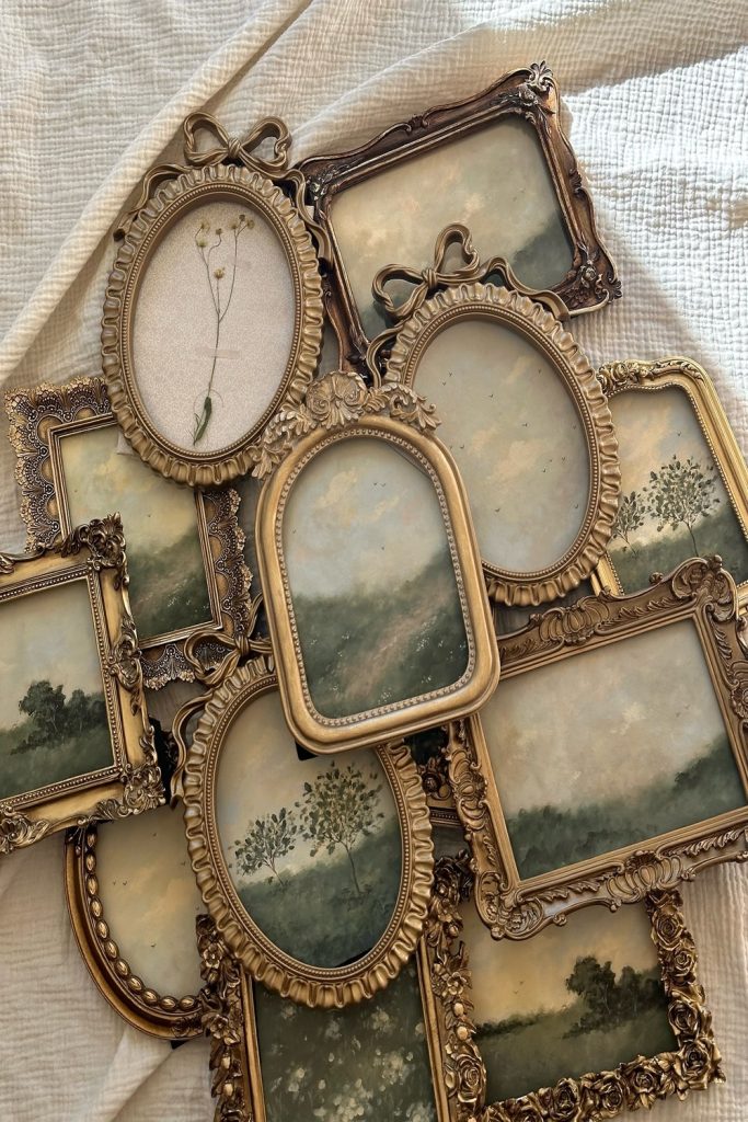 Printed on actual antique book pages (swoon). I collect old novels just for projects like this. Layered in a thrifted brass frame among stacks of hardbacks—my happy place smells like paper and possibility.