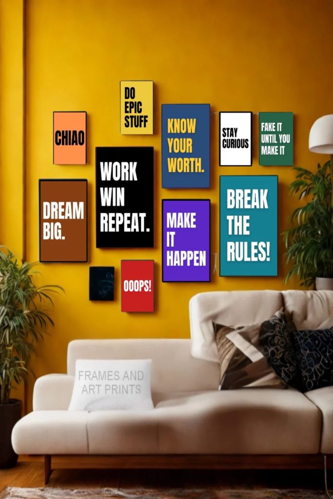 This one hangs by my sofa. It makes bad days bright. The simple frame keeps it clean and neat. The big letters do all the talk. I like that it uses the plain wall well. It looks fine with no other art. This is best for front halls or calm spots. You get calm with no mess.