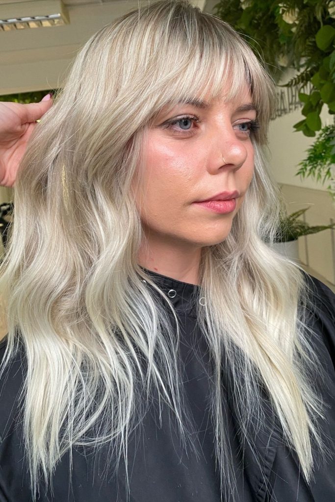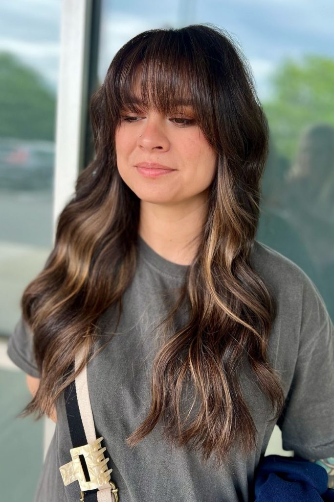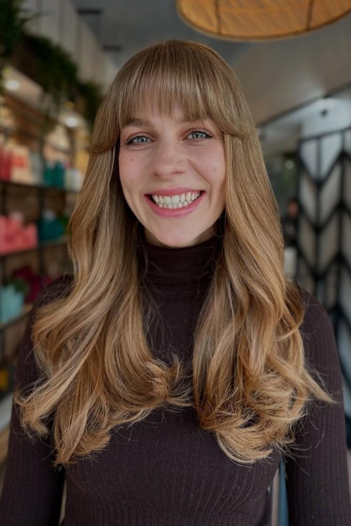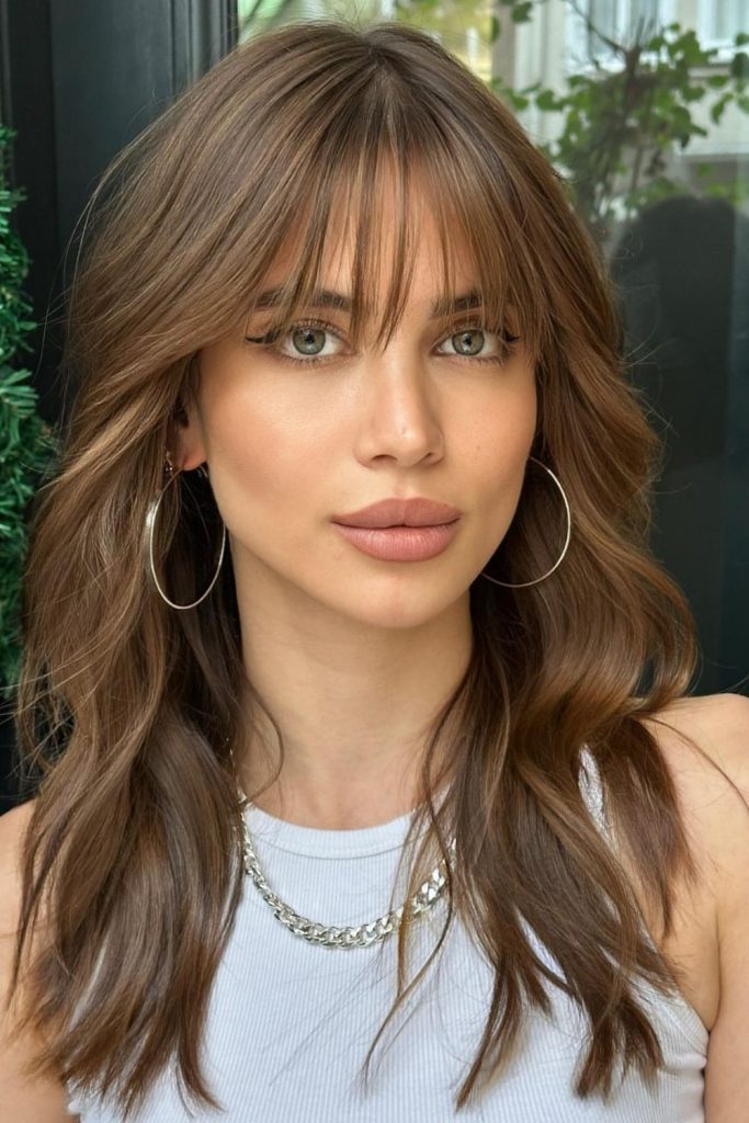 New to bangs? Go for long layers! These soft strands blend into shoulder-length hair for a smooth, pretty shape. They fit oval and round faces perfectly. I tried this look for a party and loved it! Use a curling iron to make soft waves. Add a bit of cream for shine and flow. Trim the layers often to keep them neat and fresh.