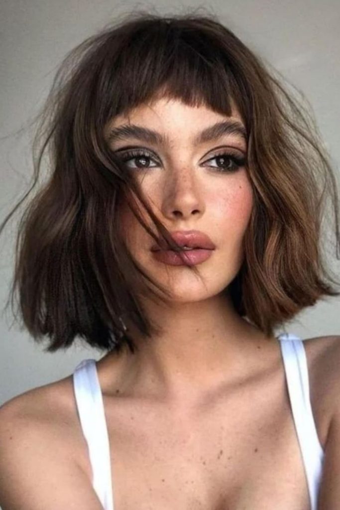 Hey you! Want a new haircut that gets noticed? At 22, I went for a blunt bob. I felt great! Now I write about fun hair trends I love. Medium hair is the best for trying cute fringe styles. It’s quick to style, easy to wash, and looks fresh every day. This year, fringe looks are so in. Try soft curtain bangs or short, bold ones. Like smooth looks? Or messy ones? You’ll find them all here. I’ll show simple ways to style and care for your bangs too. Ready to spice up your look? These twenty fringe ideas are waiting for you. Save the ones you love and call your salon today!