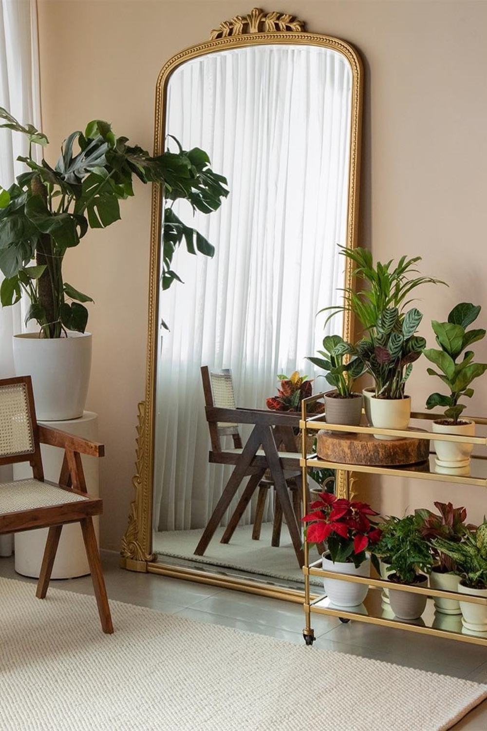 This is all about personality. I love the use of Calathea plants here; their leaves look like they’ve been hand-painted with intricate patterns. When you place them against a simple, neutral wall, they really become the star of the show. Using a mix of vintage pots and modern stands gives the entryway a collected-over-time feel that is so welcoming. It’s the first thing people see when they walk in, and it immediately signals that this is a home filled with life and care. Don’t you just love a plant that doubles as a piece of art?
