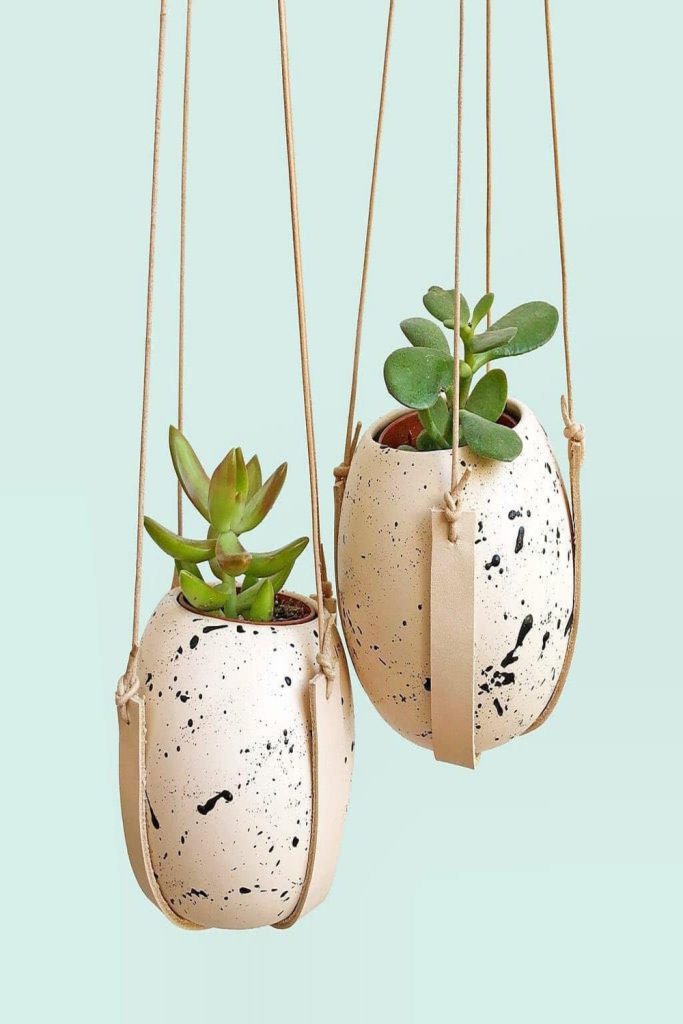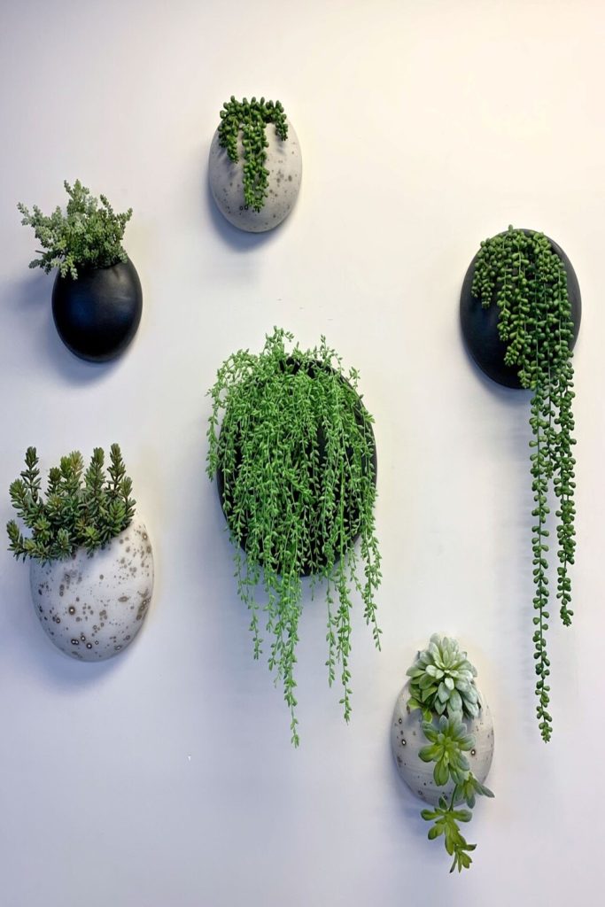 11. Monochrome Black Hanging Planters for Moody Office Vibes