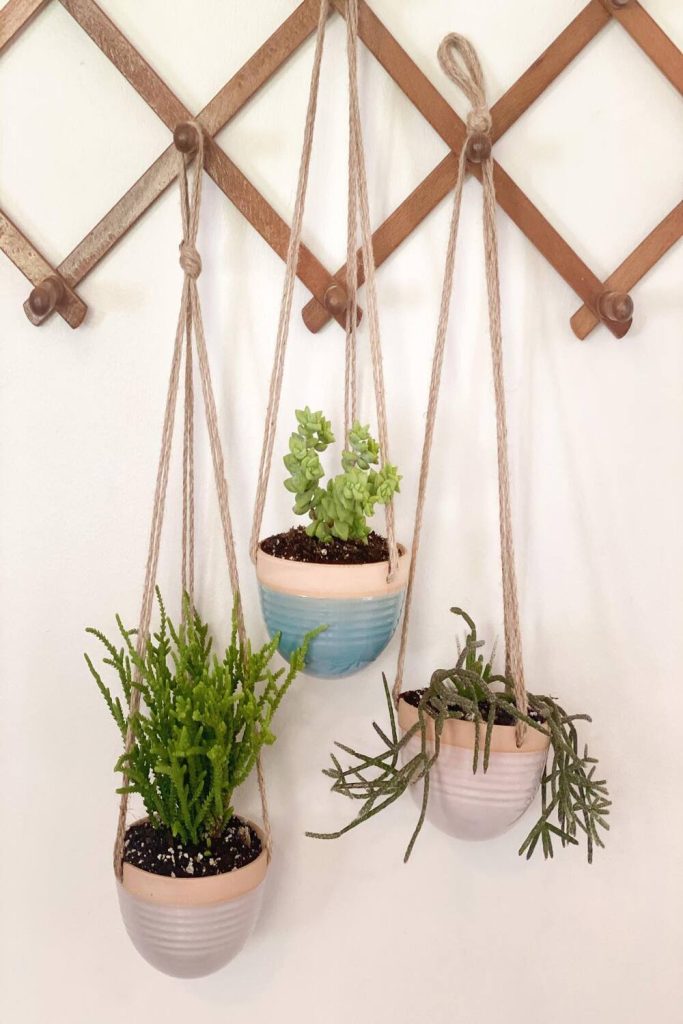 14. Crystal + Macramé Hanging Succulent for Spiritual Corners