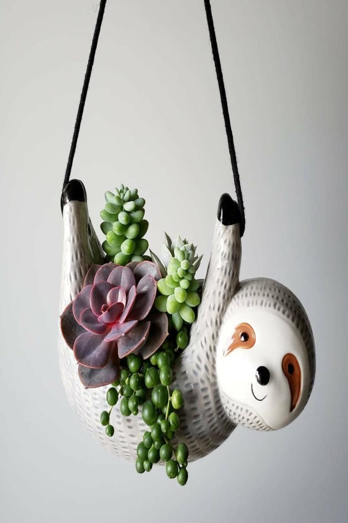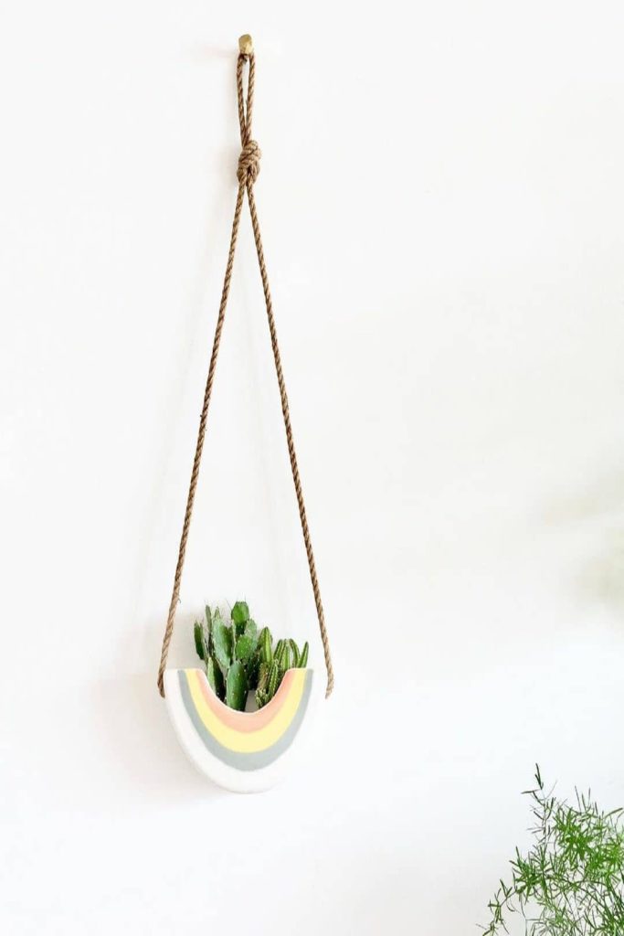 12. Rainbow Succulents in Colorful Ceramic Hanging Pots