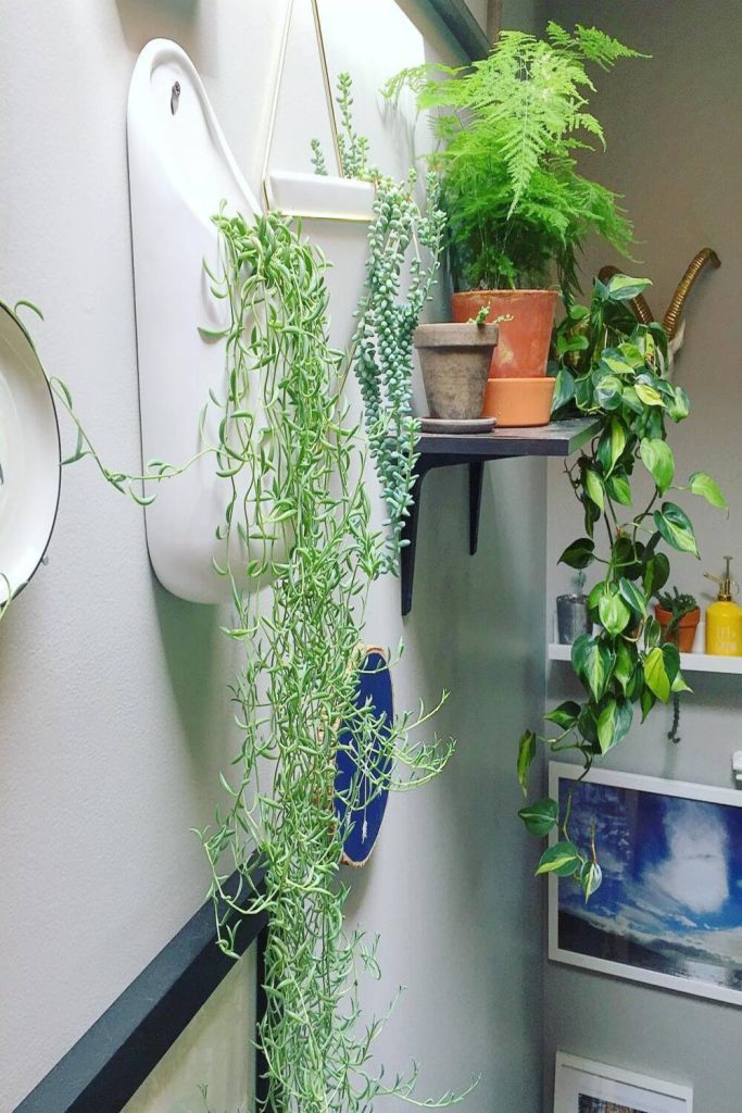 5. Tiny Bathroom Jungle with Humidity-Loving Hanging Succulents