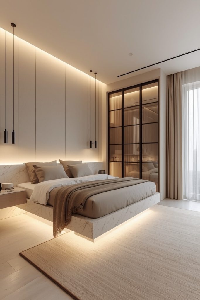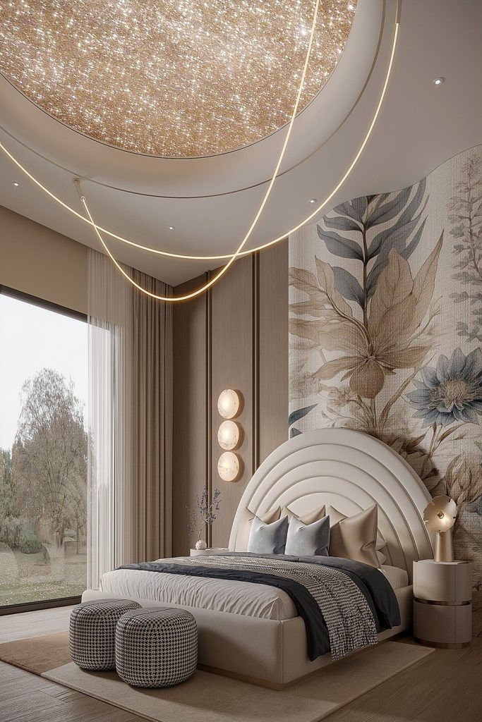 12. Romantic High Ceiling Bedroom Glow