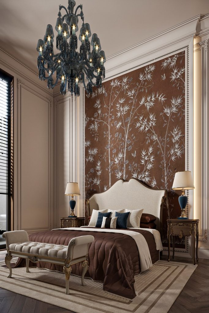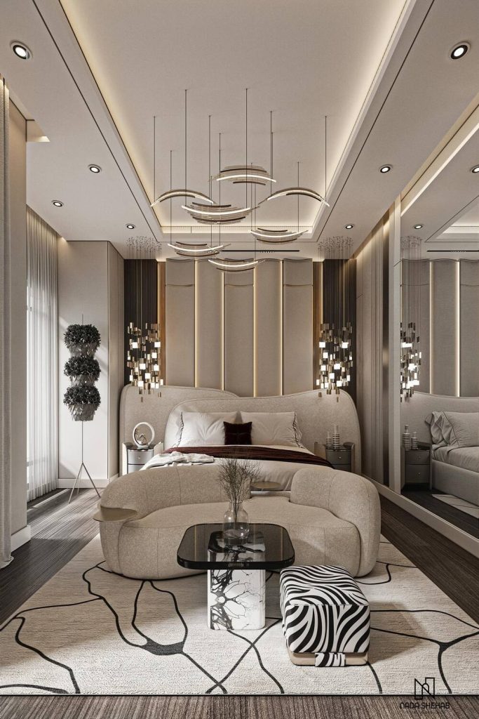 8. Luxe Glam High Ceiling Bedroom