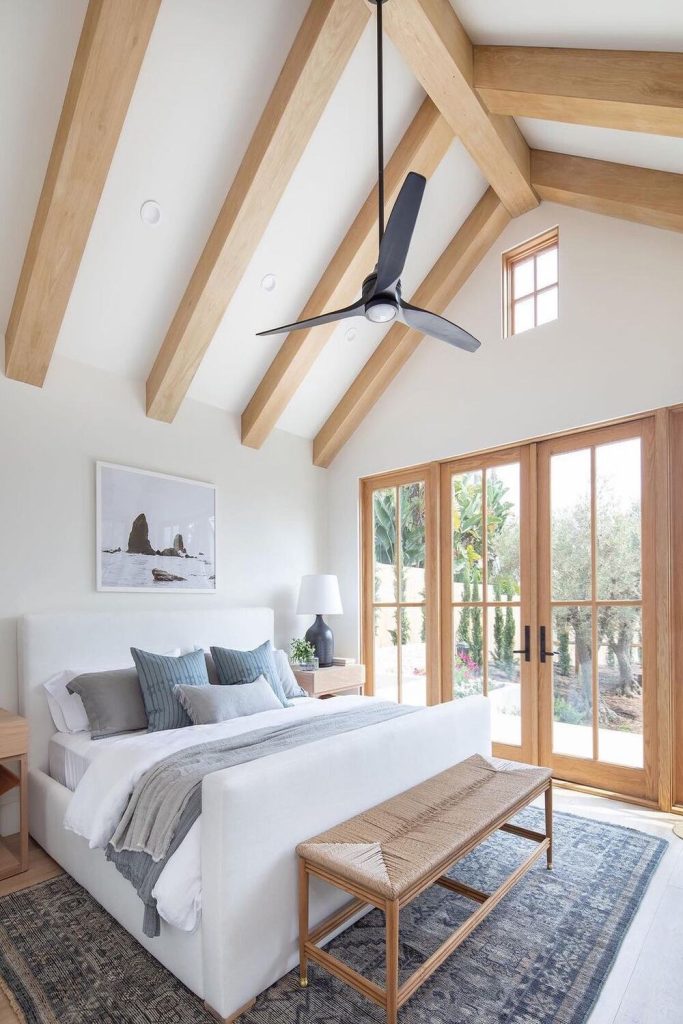 16. Cozy Farmhouse High Ceiling Bedroom