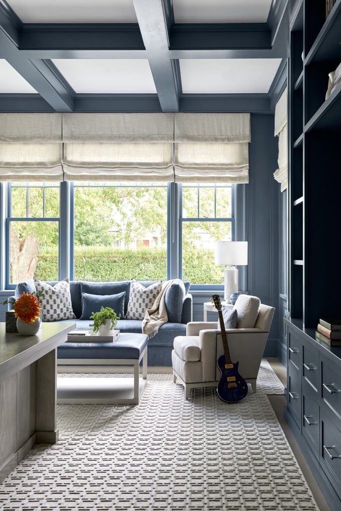 This bright office and guest room feels fresh! White walls and big windows bring in light. A small desk and fold-out bed keep things practical. Blue pillows and rugs add calm color. Vertical storage saves space. The airy feel is perfect for work or rest. Want a bright, welcoming room? Use white walls and soft accents for a room that does both jobs.