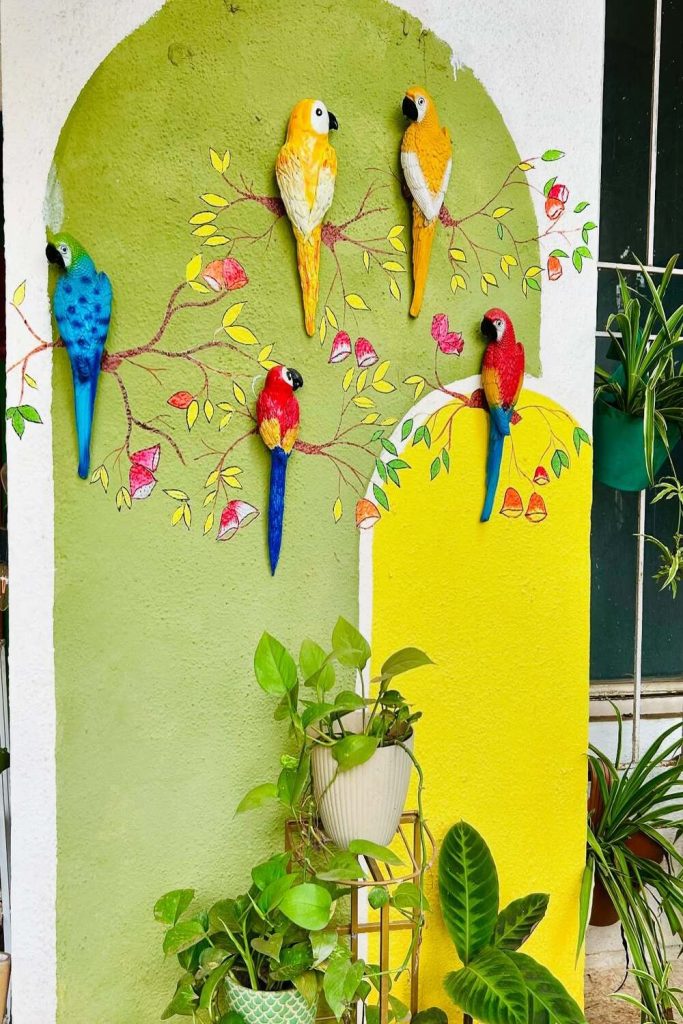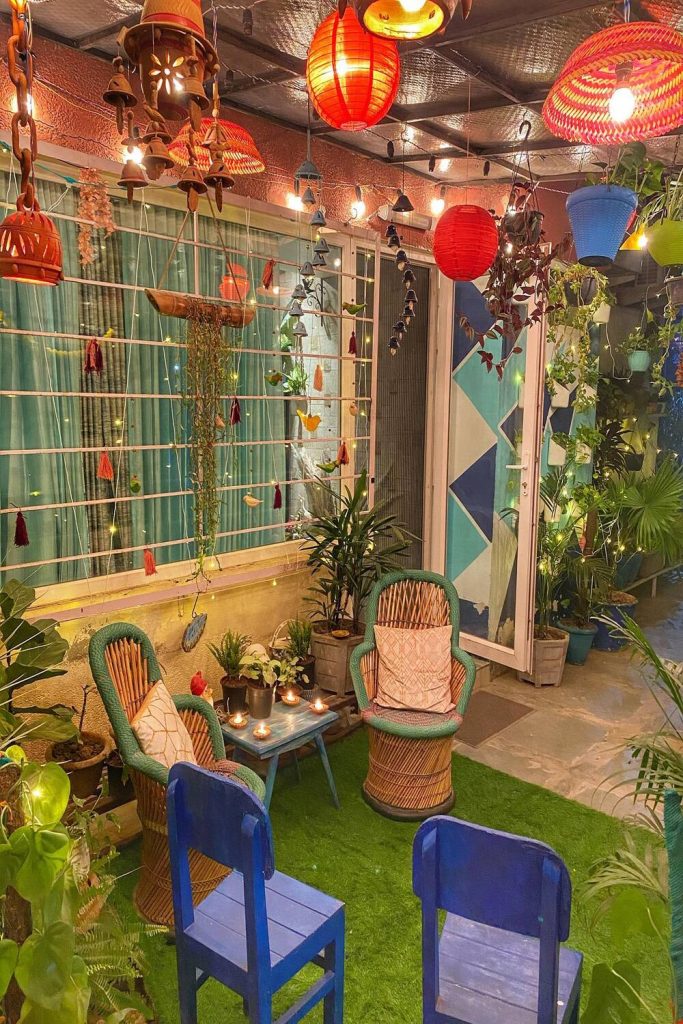 Why let the ground have all the fun? These hand-painted, vibrant birdhouses add such a whimsical touch to the garden canopy. It’s a lovely way to invite local wildlife into your space while adding “eye candy” at eye level. I love the folk-art patterns used here—they feel so authentically Indian. It’s a great way to use up leftover craft paint from other projects. Plus, there’s nothing quite like the sound of chirping birds to make a garden feel truly alive.
