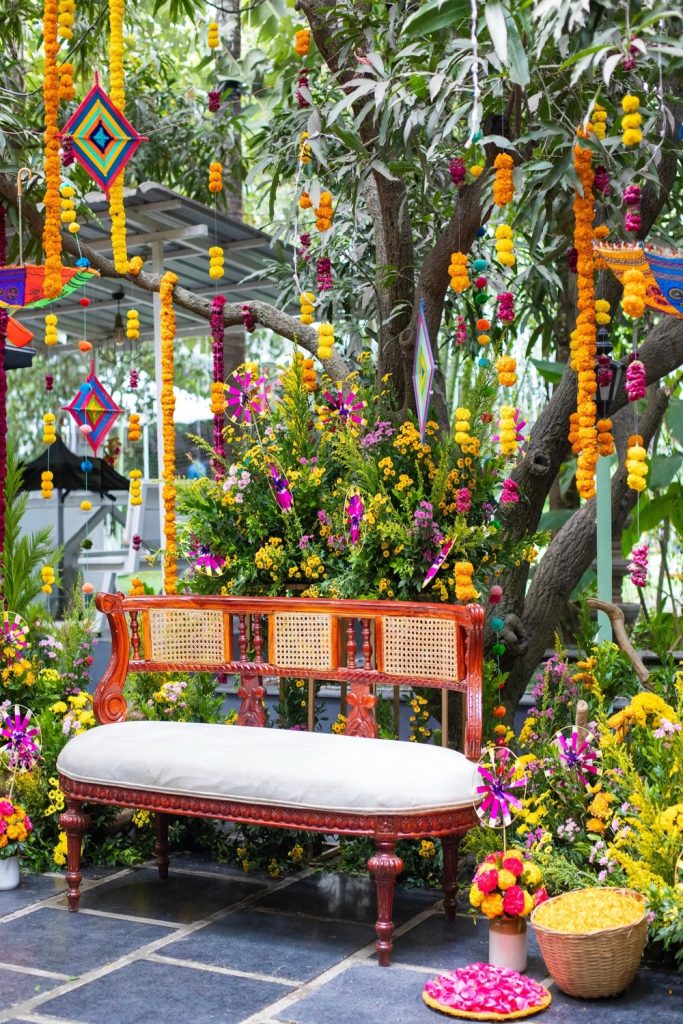 A desi garden needs a swing! This setup uses a wood swing. Add soft pillows and hanging lights. Use cloth that can stand the rain. It feels cozy and fun. Sip your tea here! Tip: hang brass bells on the chains. They make a sweet sound in the wind.