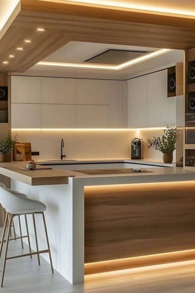 Reclaimed wood cabinets bring modern rustic charm to this kitchen, paired with matte black hardware for edge. Pull-out shelves and dividers offer smart kitchen storage ideas, keeping things tidy. The natural wood aligns with 2025’s sustainable kitchen design trends. I love how it feels warm yet contemporary. Want this vibe? Mix wood with neutral walls for balance. What’s your rustic kitchen favorite? Share below and pin this for your inspo board. This is a must for cozy kitchen ideas with eco-friendly flair!