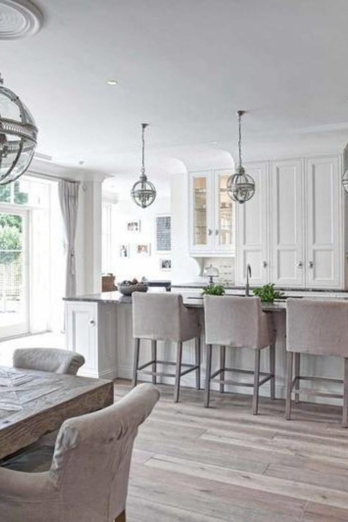 Crisp white cabinets bring classic charm to this kitchen, paired with sleek silver handles for a modern touch. Deep drawers and pull-out organizers ensure top-notch kitchen storage. The clean palette aligns with 2025’s timeless decor trends, making the space feel fresh and versatile. I love how white cabinets brighten any kitchen size. Want this look? Add colorful accents for personality. What’s your classic kitchen must-have? Share below and pin this for your remodel. This is perfect for kitchen cabinet design ideas that never go out of style!