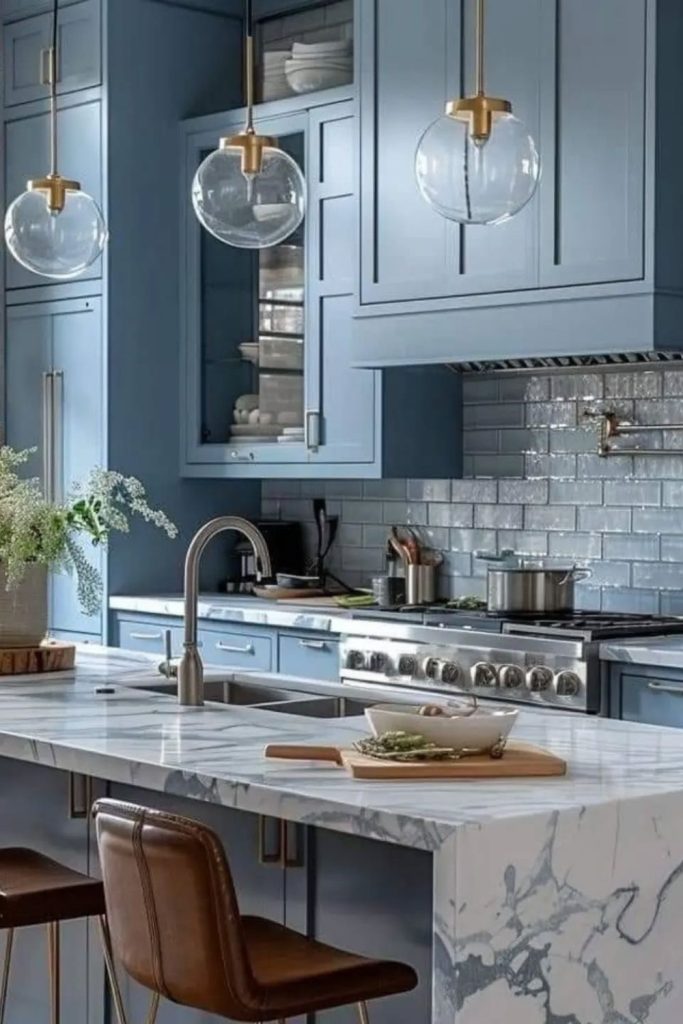 11. Coastal Vibes with Soft Blue Cabinets