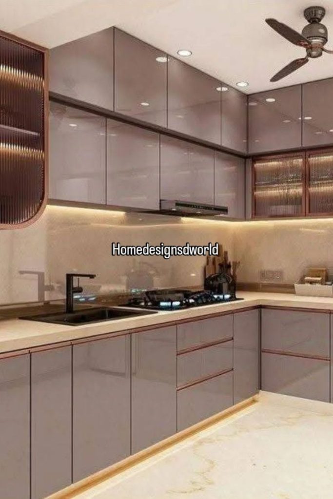 These glossy white cabinets scream cozy minimalism, with clean lines and hidden handles for a seamless look. Pull-out organizers maximize small kitchen storage, keeping everything tidy. The soft gray countertop ties into 2025’s neutral palette, creating an airy, functional space. As a decor lover, I’m obsessed with how this balances simplicity and utility. It’s proof you don’t need ornate details for impact. Add under-cabinet lighting for extra warmth! What’s your minimalist kitchen trick? Drop it below and save this for your next remodel. Pin this for endless kitchen decor inspiration!