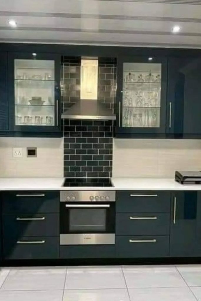 Soft blue cabinets bring coastal charm to this kitchen, paired with white countertops for a breezy feel. Built-in dividers and pull-out trays offer smart kitchen storage ideas, keeping clutter hidden. The serene palette aligns with 2025’s calming color trends. I love how blue evokes tranquility without overpowering. Want this vibe? Add woven baskets for texture. What’s your favorite coastal touch? Share in the comments and pin this for your kitchen inspo. This is perfect for modern kitchen cabinets with a relaxed, beachy aesthetic!