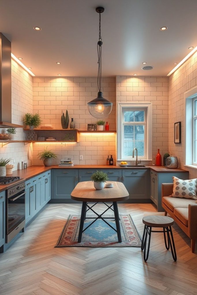 Warm wood cabinets define cozy minimalism in this kitchen, with clean lines and natural textures stealing the show. Built-in dividers and pull-out trays make kitchen organization a breeze, ideal for small spaces. Muted sage green walls tie into 2025’s earthy palette, creating serenity. I love how wood adds warmth without clutter. For a similar vibe, try sustainable materials like bamboo. What’s your favorite way to add warmth to a kitchen? Share in the comments and pin this for your remodel. It’s a must for cozy kitchen ideas that inspire!