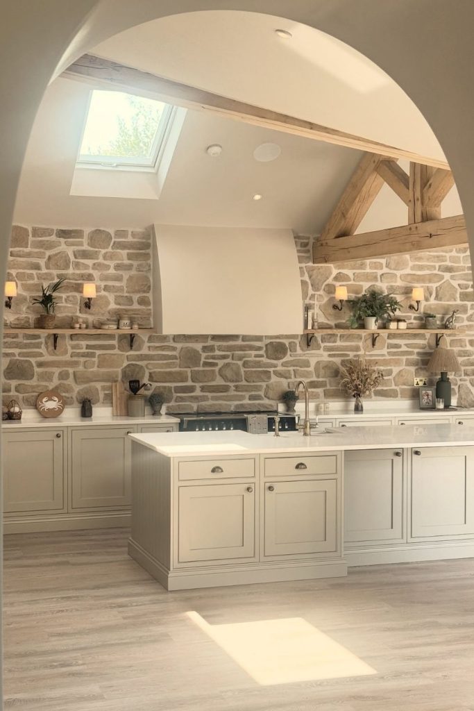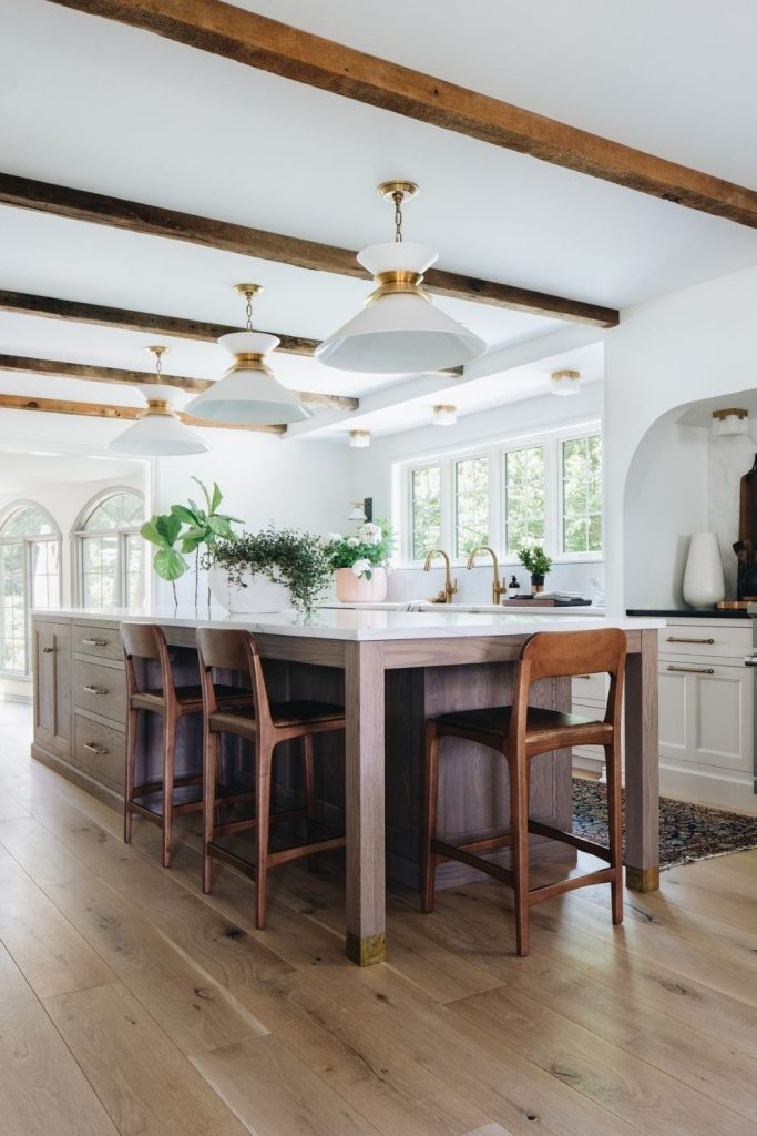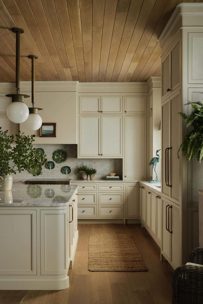 Oh, remember that old farmhouse I flipped last summer? The ceiling was begging for love, so I went with these reclaimed wood beams running across, paired with Edison bulb pendants that cast this golden, storybook glow. It’s all about that sustainable twist—sourced from a local mill, no fancy imports. The warm light pulls your eye up, making the space feel taller and cozier, especially with those soft shadows on the whitewashed walls. I layered in some greenery hanging low, and bam, it’s like cooking in a woodland cabin. If your kitchen’s feeling too sterile, try this: it’ll ground the room without overwhelming it. Who’s ready to add some texture up top?