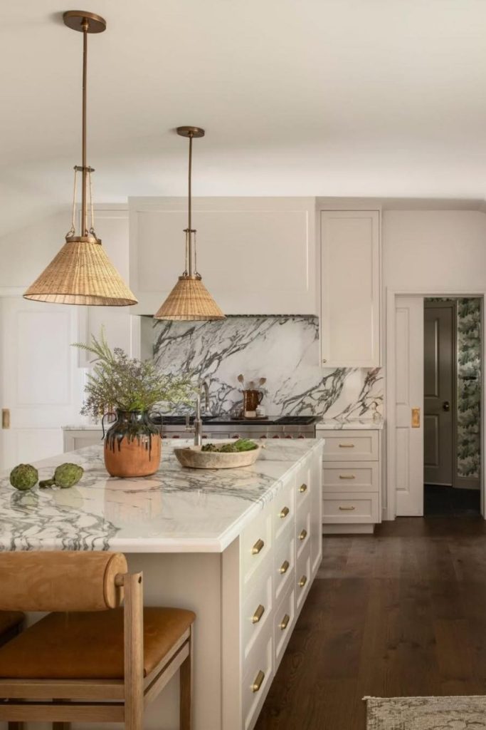 Bamboo’s my sustainability hero—these woven pendants over a bamboo island create this breezy, tropical hush that’s all zen. Sourced ethically from fast-growth farms, they filter light into leafy patterns on stone floors. In a humid-climate kitchen I tuned, it cooled the vibe literally and figuratively. Natural fibers mean easy care, no chemicals. Fresh take on green decor! If eco’s your ethos, string ’em up—pin and ponder your next natural nod.