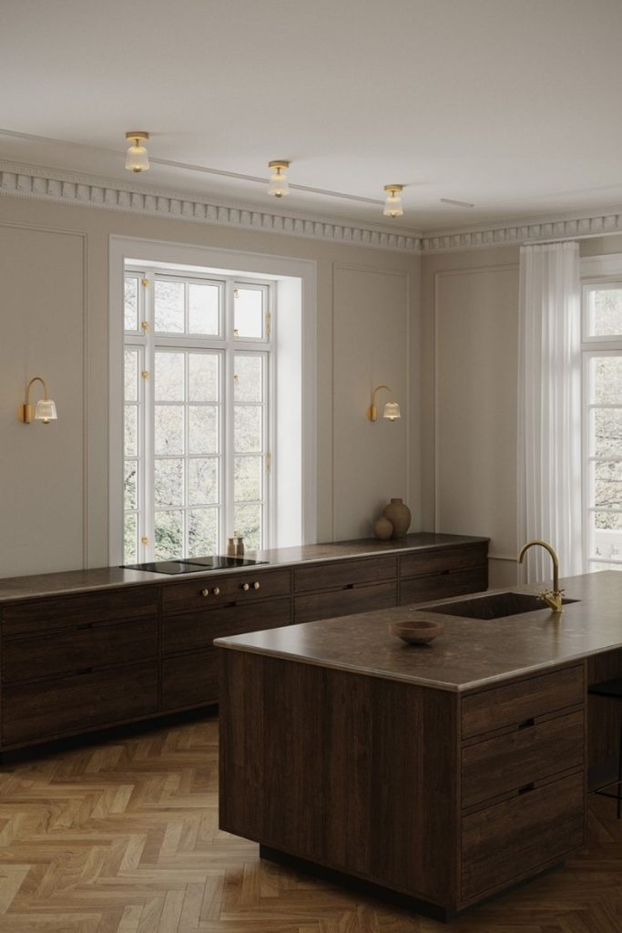 Scandinavian style is my forever crush—clean track lighting hugging the ceiling beams, with adjustable spots that follow your flow. In my last reno, it highlighted open shelves bursting with herbs, all while keeping that airy, lagom calm. Wood accents and soft whites play off the linear design, pulling in minimalism without starkness. Practical perk: easy to redirect for seasons, like brighter for holiday baking. I’ve seen it transform cramped spots into breezy havens. Keep it simple, friends—this is low-effort, high-impact. What’s your go-to Scandi element? Let’s swap stories.