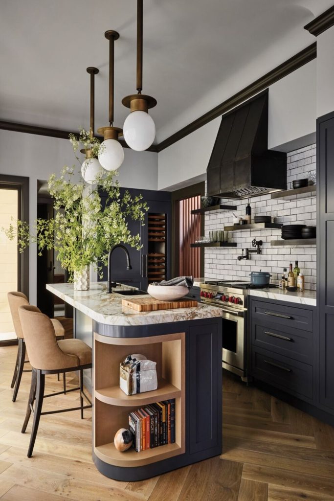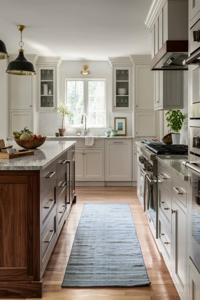 This rustic modern kitchen entrance feels warm and stylish. Wood tones mix with matte black for a cool balance. The open plan feels big and connects to a cozy dining spot. A bold light adds drama, and soft brown shades keep it calm. As a decor fan, I love this inviting space. Try a fun light for a special touch. What’s your best rustic-modern tip? Save this to your Pinterest and share your ideas below—I’d love to see your kitchen style!