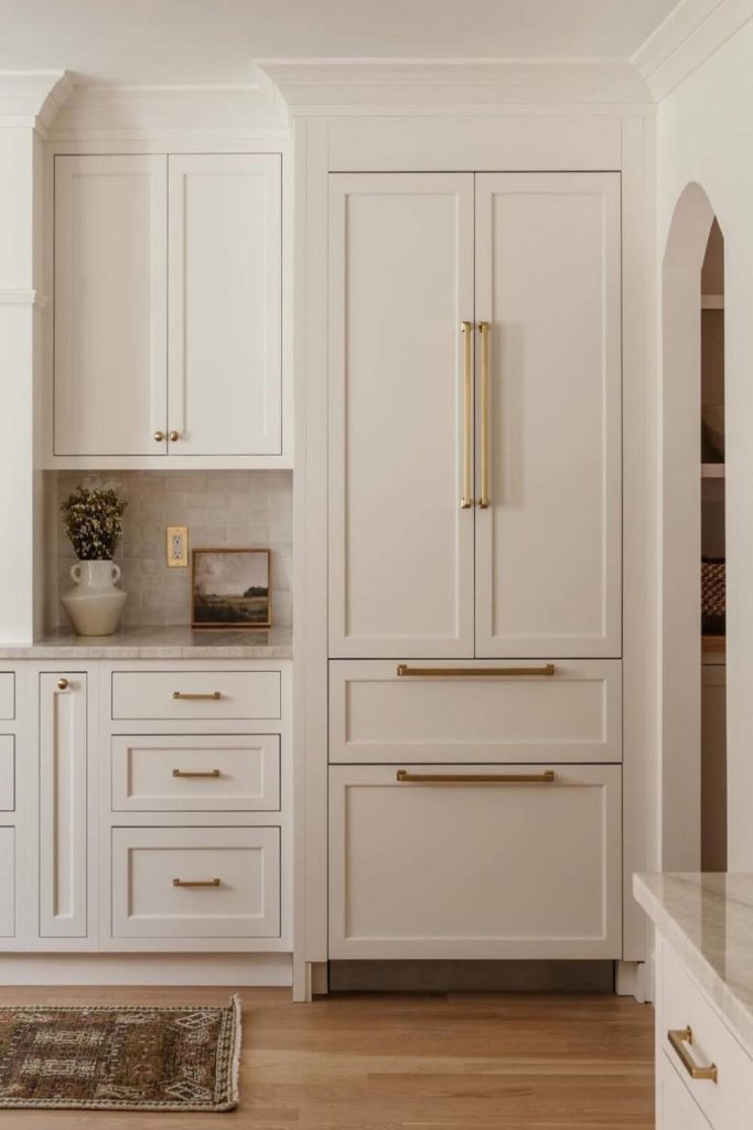 This kitchen entrance looks classic and fancy. Cream cabinets and marble tops make it rich and calm. The open layout moves easily into a dining space, great for dinner nights. Gold touches add shine, and soft colors keep it peaceful. As a decor blogger, I love how it feels both fresh and timeless. Add gold-trimmed glasses for a lovely sparkle. What’s your favorite elegant touch? Save this to your Pinterest and share your ideas below!