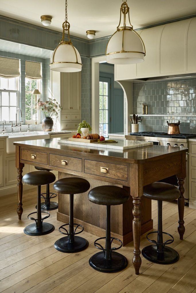 This farmhouse kitchen entrance feels open and friendly. Its wide layout and rustic vibe make it feel like home. Shiplap walls and a worn wood island add warmth and charm. Open shelves show your favorite decor, and sage green touches make it fresh. As a decor blogger, I love how this space mixes style and use. Add a ceramic jug for a cute detail. What’s your must-have farmhouse piece? Pin this for your next kitchen plan and tell me below!