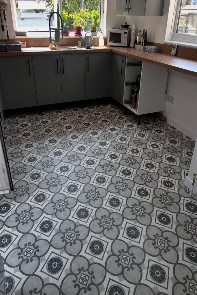 This kitchen mixes earthy colors with modern design. Terracotta tiles and wood cabinets feel cozy. The open plan flows into a dining area. Quartz counters and black fixtures are eco-friendly. The U-shape keeps things easy to reach. Want this look? Use earthy colors and natural materials. Pin this plan and share how you’d make it inviting.