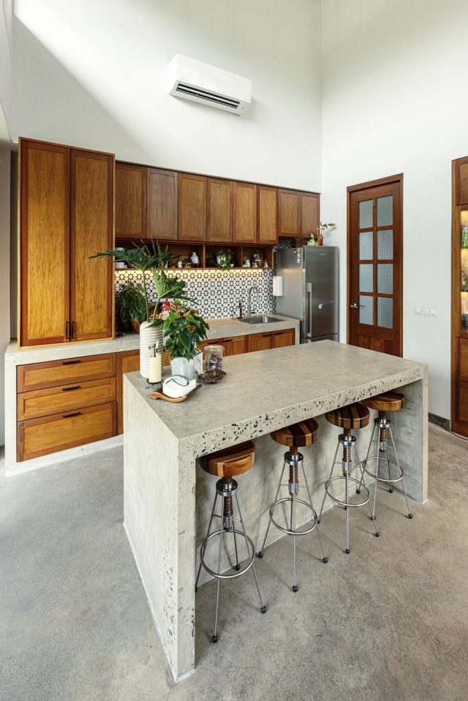 This kitchen is colorful and fun! Yellow cabinets and patterned tiles stand out. The open space links the kitchen to the living area. Bamboo counters and old-style lights add charm. Smart shelves keep things tidy. The L-shape saves space. 2025 trends love color and play. Want this look? Paint cabinets bright. Pin and share your bold ideas!