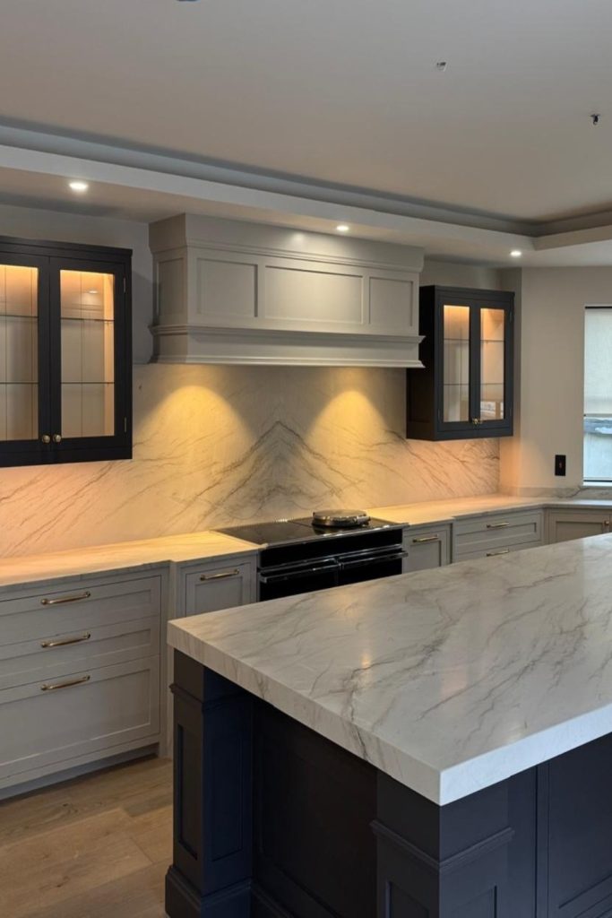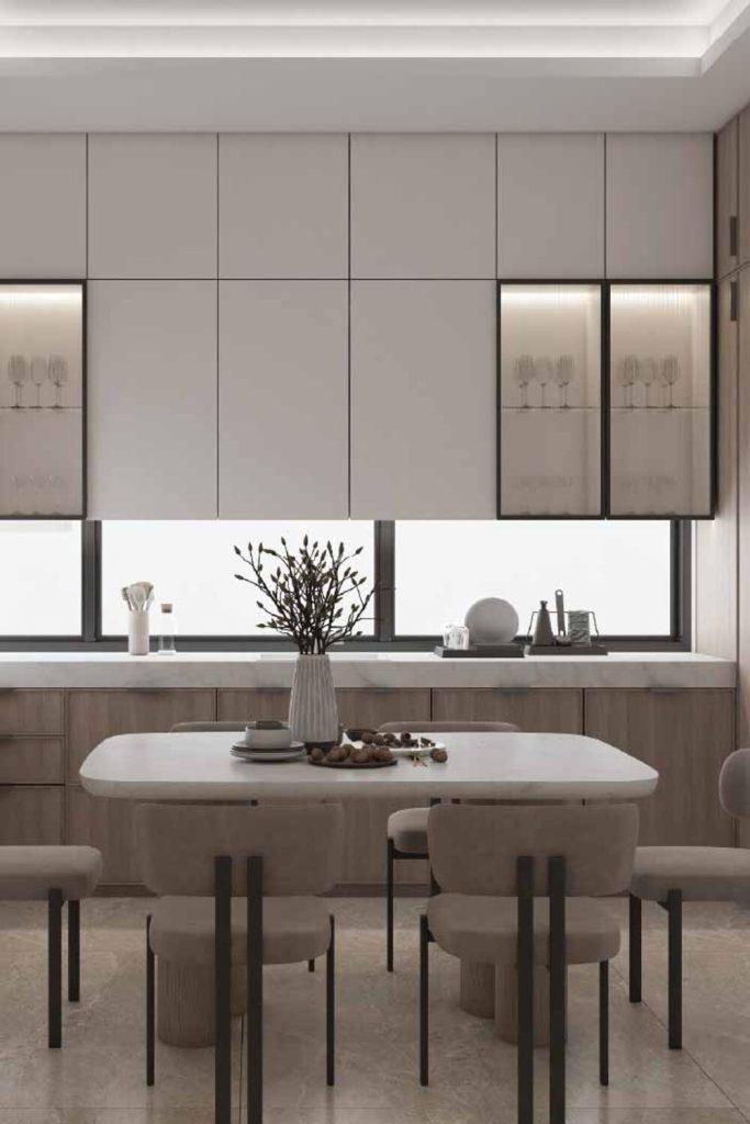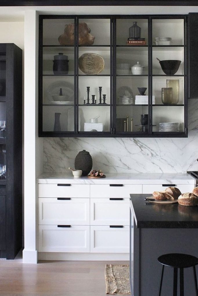 Modern Elegance in Glass Cabinets These glass cabinets look so classy. Black frames and clear glass shine. They show simple plates. They show shiny things too. This fits the cool 2025 style. Open shelves make small kitchens feel big. Soft lights make it all glow. I love this look so much! Want the same feel? Pick one or two colors. Add a few bold things. Try it next time you fix your kitchen. Share tips here or save to Pinterest!