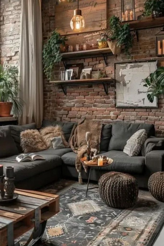 This kitchen island blends industrial and cozy styles. A concrete countertop sits on wood cabinets. Black metal and exposed bulbs add urban style. Woven rugs soften the space. It works well in loft kitchens and is both useful and stylish. Tip: Mix wood and concrete for texture. Love this look? Pin it and share your cozy-chic ideas!