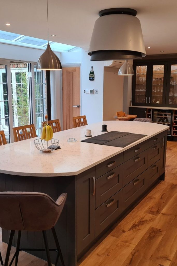 This kitchen island shows luxe minimalism. The black island with a glossy quartz top looks sleek. Gold lights add glamour. Neutral walls keep it airy. It fits 2025’s love for simple style. Tip: Use metallic accents a little for effect. Love this look? Pin it and say how you’d add luxury to your kitchen!