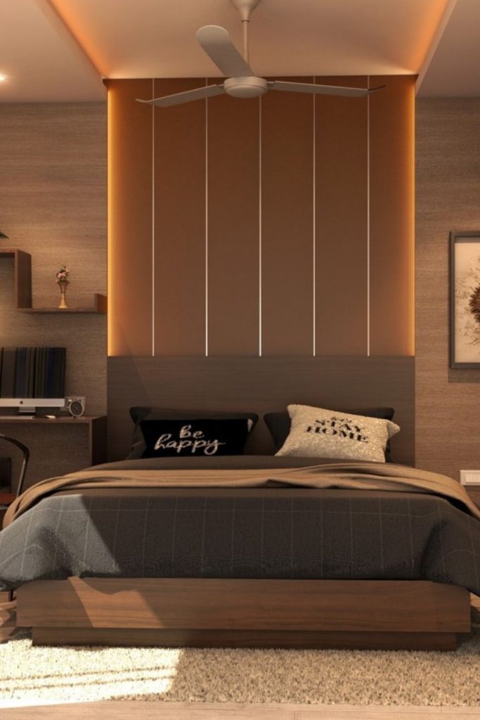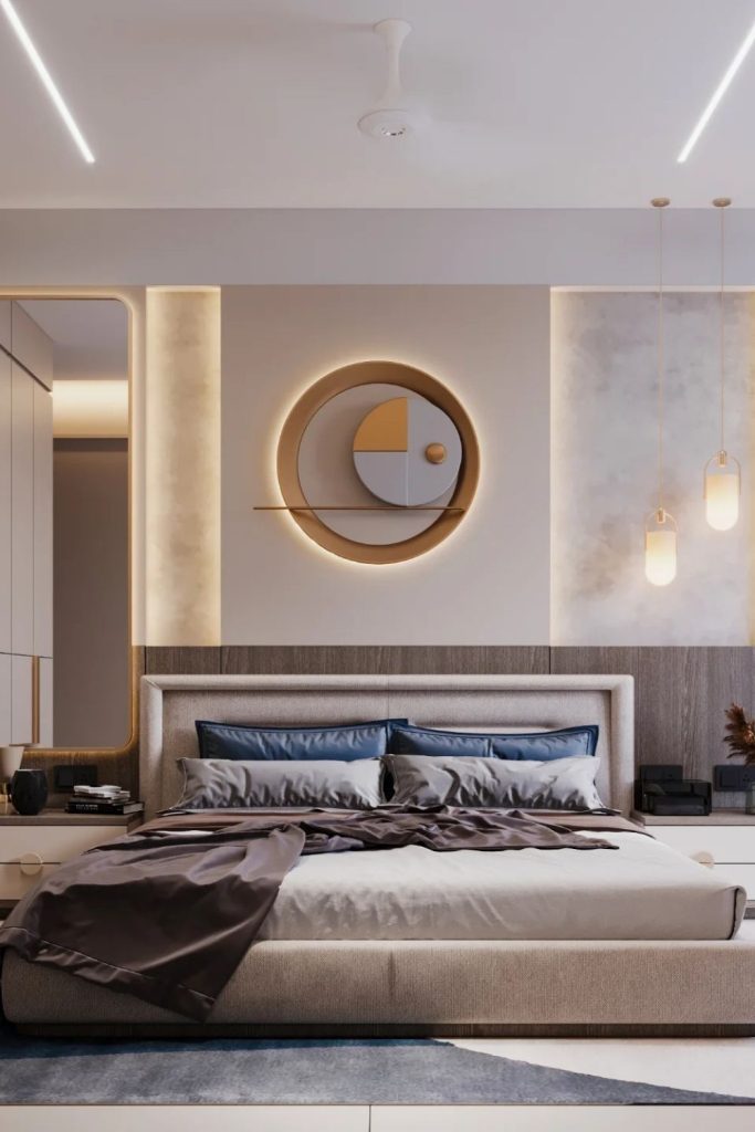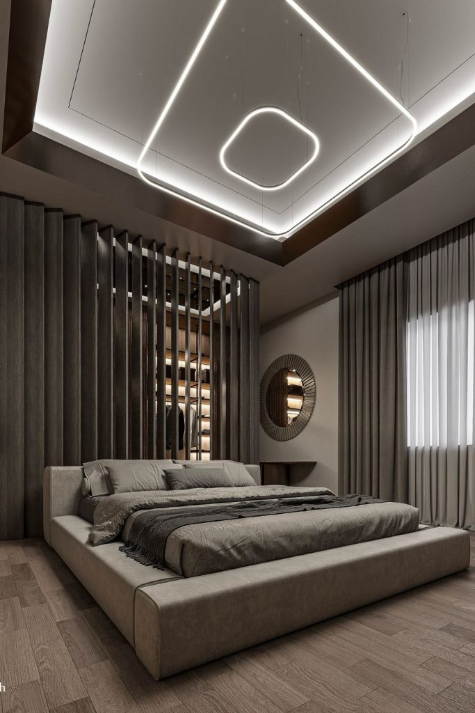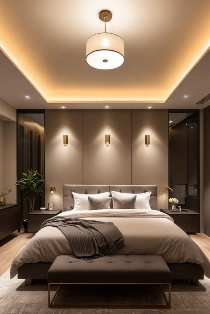 This bedroom has soft LEDs in the ceiling. The gray and white shades keep it simple. The lights give off a calm feel all around. It’s neat, modern, and saves energy. Want to upgrade your room? Try this ceiling glow idea!