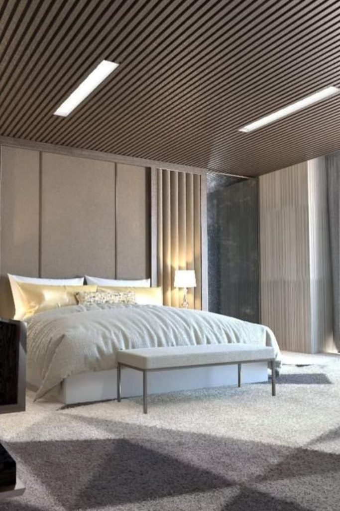 This bedroom glows with LED string lights on the ceiling. The soft light fits cozy bedding and warm colors, great for chilly nights. It shows minimalism with eco-friendly lights. I love how these lights add charm without mess. Want a cozy bedroom? Save this or share your string light tips!
