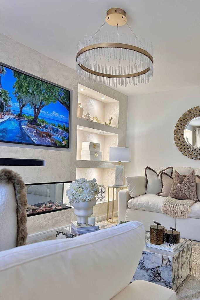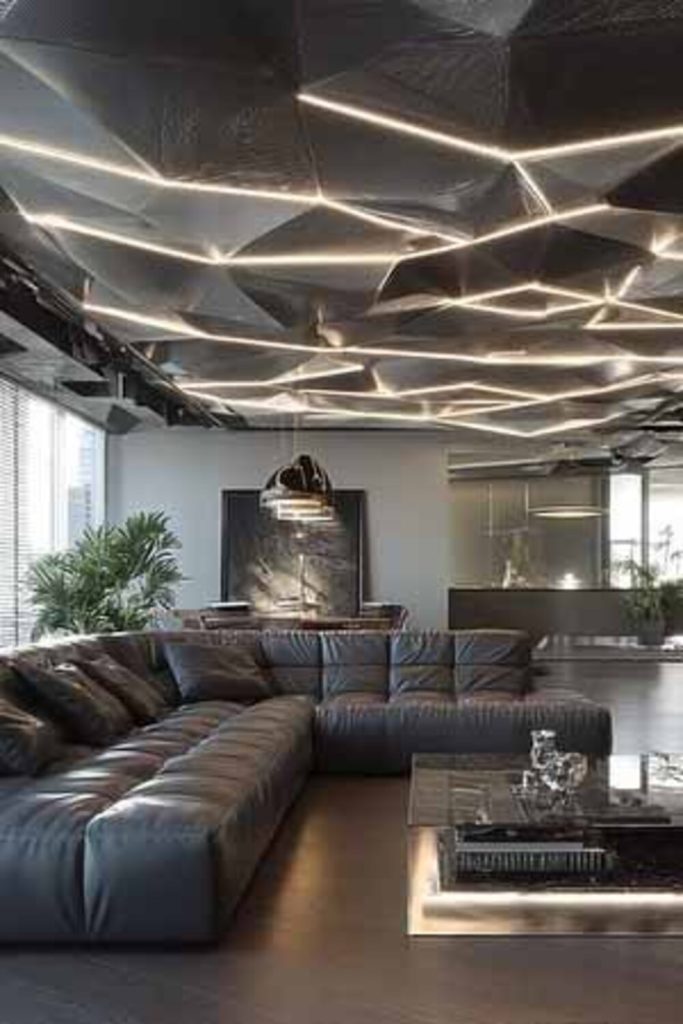 Smart homes start overhead. This grid of tunable recessed lights shifts from 2700K cozy to 5000K bright via app. I’ve programmed scenes in my own loft—movie, read, party. Use narrow-beam for art, wide for general. No visible bulbs = clean lines. Future-proof living room ceiling ideas. Pin and geek out over your smart setup!