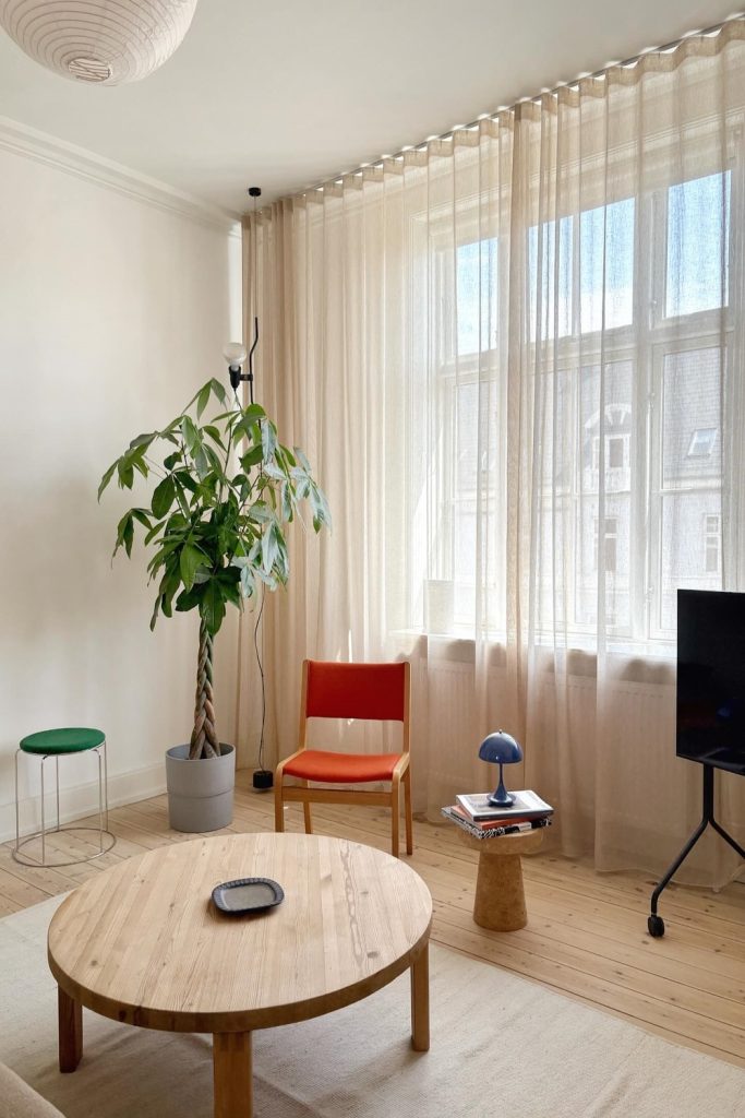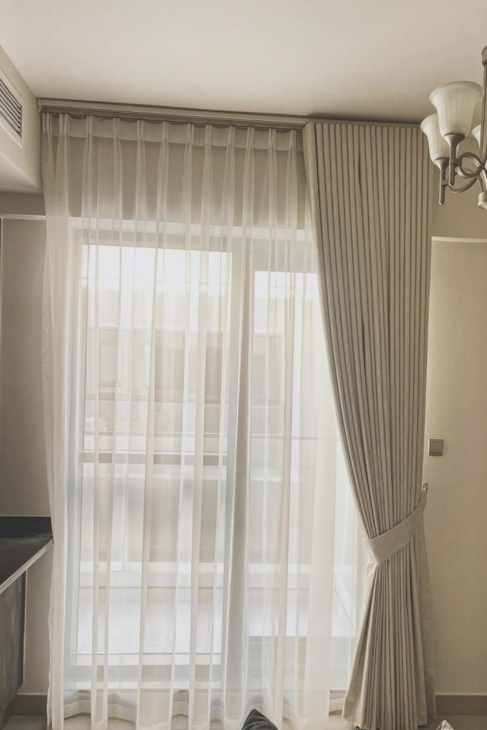 White sheer curtains and wood beads feel calm. The beads make pretty tiebacks. I made these in my last home. Everyone loved them! Use light cotton sheers. They help the earth and cost little. You do not need thick fabric for cozy living room curtains. Add simple roller blinds under them. Minimalism curtains stay easy and pretty. Living room curtain ideas this calm make days better. Pin it for happy peaceful vibes!