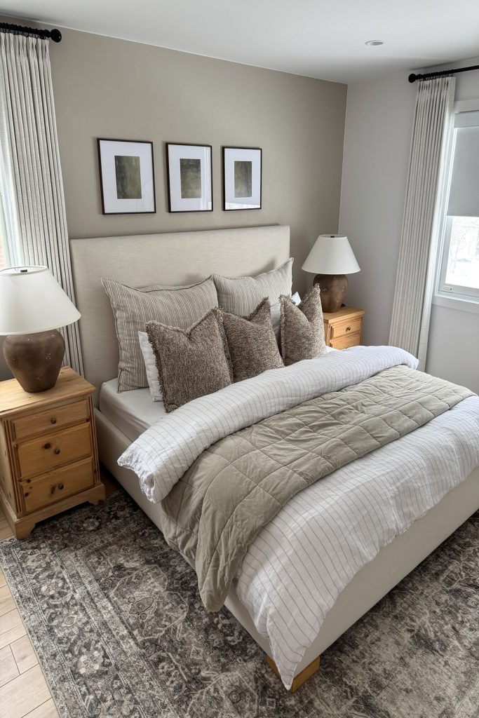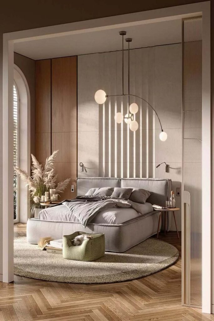This master bedroom is a lesson in cozy minimalism done right. The soft beige linens and sleek wooden bed frame create a calm, clutter-free space. I love the subtle texture of the woven throw, adding warmth without fuss. The muted color palette—think creamy whites and warm taupes—feels timeless and soothing. It’s ideal for anyone seeking simple bedroom decor inspiration. Pro tip: Use under-bed storage to keep the minimalist vibe intact. Want to recreate this serene look? Pin this and share your favorite neutral decor ideas below!
