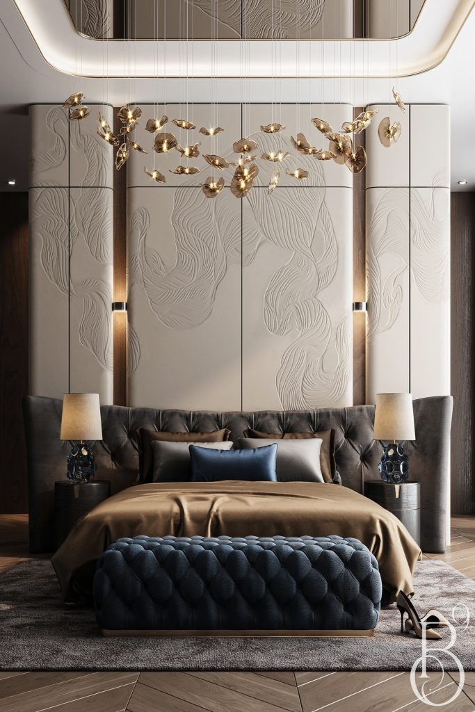 This master bedroom oozes modern glamour with its plush velvet bedding and sleek metallic accents. The deep navy palette, paired with gold-trimmed decor, feels both bold and elegant. I love the statement chandelier that adds a touch of luxury without overwhelming the space. It’s a perfect example of a master bedroom refresh that balances opulence with cozy minimalism. Want to elevate your space? Add metallic accents sparingly for that chic vibe. Save this look for inspiration and drop your glam decor ideas in the comments—I’d love to hear them!