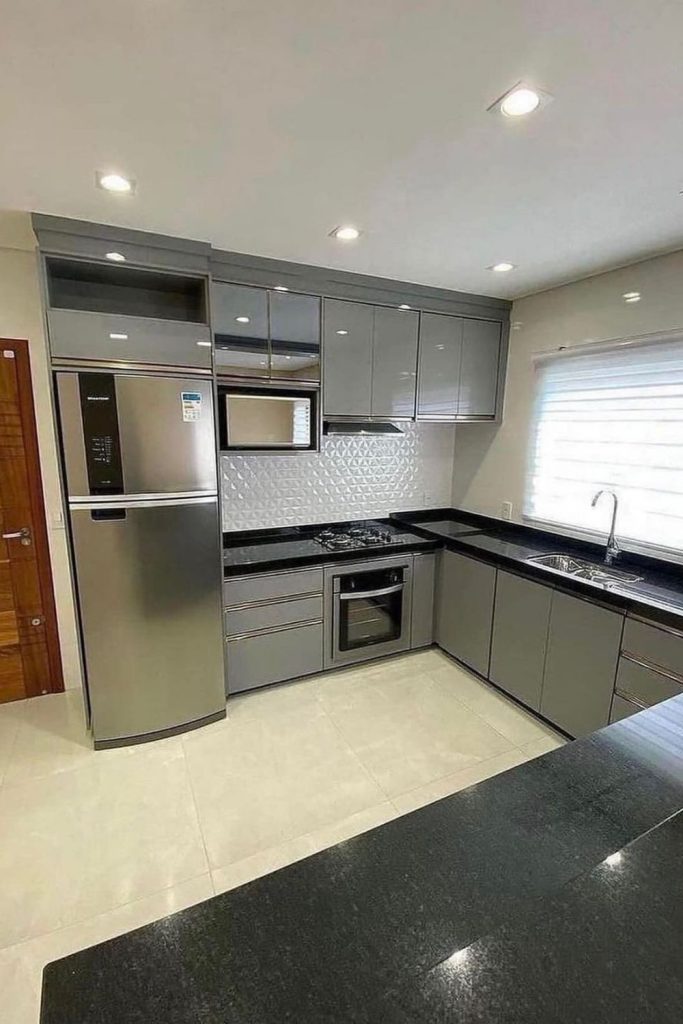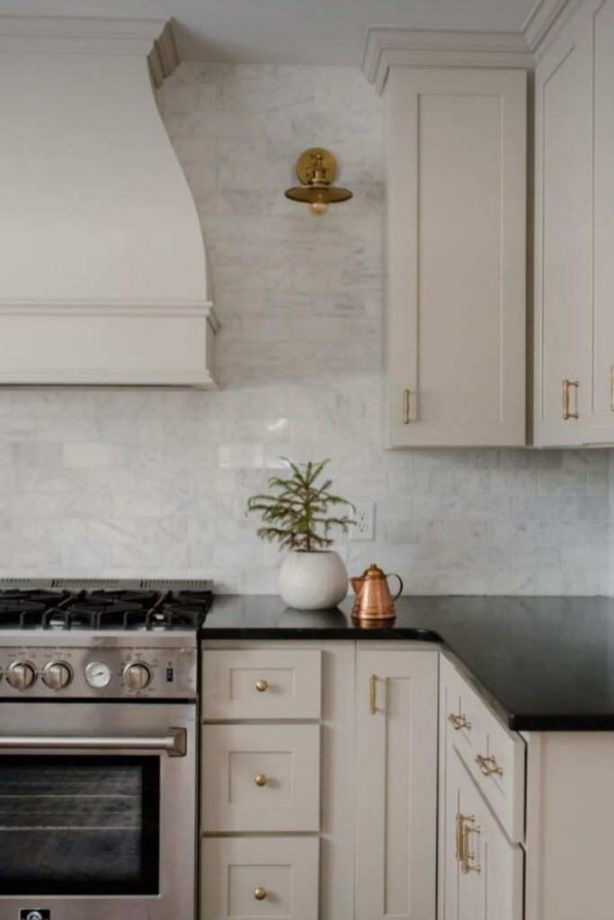 This kitchen is a timeless classic! The black countertops pair with shaker-style cabinets and sleek chrome hardware, blending traditional and modern vibes. A marble backsplash adds elegance, while a small plant keeps it fresh. I’m all about kitchens that feel both cozy and chic, and this one nails it. For your space, try mixing classic elements with modern touches like bold lighting. Save this for your kitchen inspo and let me know your favorite way to add modern flair to a classic kitchen in the comments!