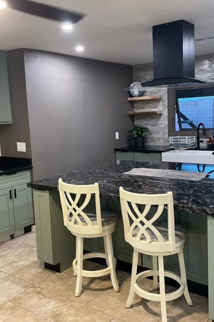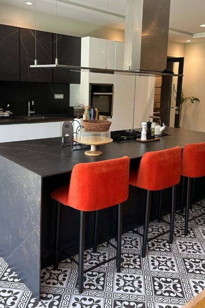 This kitchen is boho perfection! The black countertops anchor a mix of patterned tiles, woven baskets, and lush plants, creating a free-spirited vibe. Brass accents add a touch of warmth, making it feel eclectic yet cohesive. I love how black countertops balance the playful boho elements. As a decor enthusiast, I’d suggest mixing textures like macramé or rattan for that boho charm. Pin this for your kitchen inspo and share your favorite boho decor idea in the comments to inspire others!