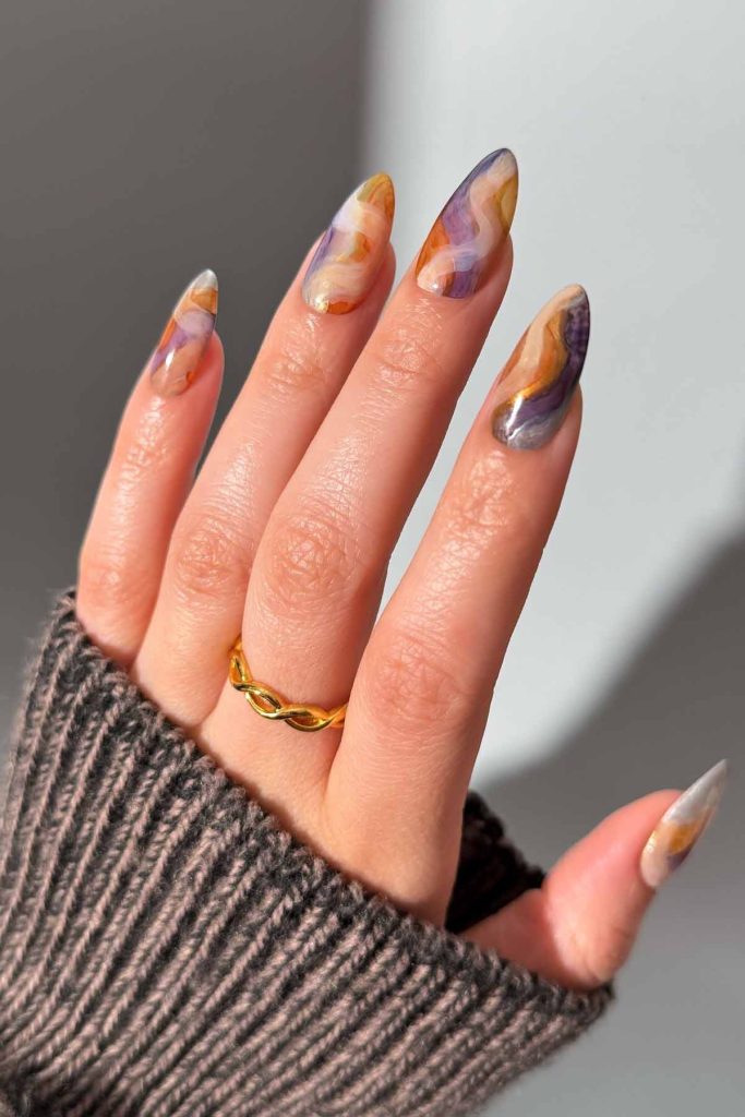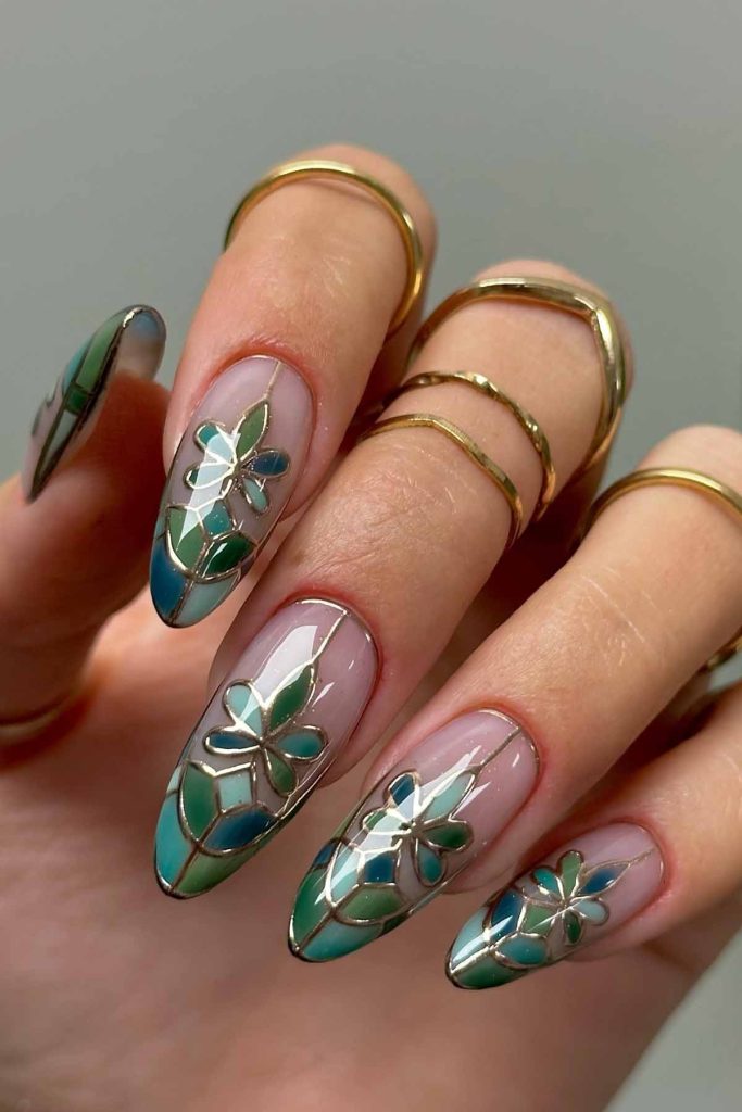Stained glass nails are colorful and stylish. They use dark lines and bright shades like purple or green to look like glass art. This design fits long nails and is perfect for parties or art shows. I wore it to a winter event, and my nails were stunning. Add a clear coat often to keep them shiny and smooth.