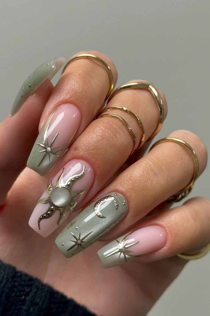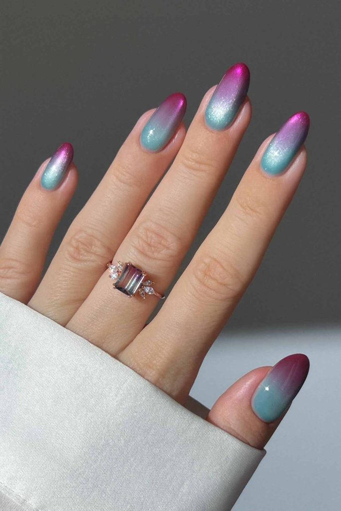 Gradient nails blend soft colors with fun shapes like triangles or squares. This style looks lovely on long nails in pink or blue tones. It’s perfect for spring, brunch, or date nights. I wore it to a baby shower, and it felt dreamy. Add a shiny coat to make the colors glow.